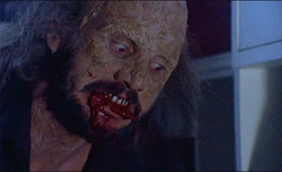 Sì e no. Come vedete, non riesco ad essere ironica come quando scrivo di altre "perle" d'italico orrore. Questo perché Antropohagus mi fa schifo a pelle, mi mette ansia nonostante la pochezza degli effetti speciali (quella testa finta dentro al secchio, santo cielo...), la cagnoleria (?) degli attori, la messa in scena goffa, la colonna sonora raccapricciante (la micidiale combinazione simil-sirtaki/simil-sarabanda Handeliana rischia di far esplodere le orecchie ai più sensibili, occhio) e alcuni palesi errori di regia/sceneggiatura/consecutio temporum, talmente grandi da causare un sanguinamento oculare post rotazione a velocità warp. Per esempio, quando Maggie viene trascinata via dal mostro, dall'inquadratura si evince benissimo che gli amici di lei non potevano non vederli: erano lì a un metro!! Poi ci sono gattini e pipistrelli che vengono letteralmente lanciati addosso agli attori, persone che non sanno leggere le carte eppure se la credono tantissimo, gente che arriva in un'isola sconosciuta ma, chissà come, ha già in tasca la chiave del cimitero per giocare scherzoni alle amiche, gente che mangerebbe il figlio senza scrupoli ma non Marta, Marta no, Marta ci dispiace e diventiamo pazzi, mi raccomando, ville di due piani che, magie del montaggio, si ritrovano con settantadue rampe di scale, manco fossero un grattacielo newyorchese, soprattutto c'è un cannibale sprecone, che alle sue vittime tira un morso e poi bon, il resto lo lascia ai ratti oppure lo nasconde sotto lenzuola (comprarsi un frigo pare brutto?) che le sciocche protagoniste non mancano di sollevare non una ma due, tre volte, neanche la solfa cambiasse e sperassero di trovarci sotto un buono per il parrucchiere invece che un cadavere putrescente. E però. E però caSSo, la "scena del coniglio" rivolta lo stomaco ancora oggi, nonostante sappia che di coniglio si tratta. E però George Eastman fa paura anche e soprattutto con quel trucco raffazzonato che gli hanno messo in faccia, e lo so che è assurdo pensare che qualcuno possa diventare un mostro di simile bruttezza "solo" per essersi dato al cannibalismo ma l'idea di un paesino abbandonato dove costui scorazza libero di morderti la giugulare qualche brivido me lo da. E però Antropophagus appoggia sulla schiena dello spettatore un bel carico di disagio, anche per tutti i difetti elencati sopra, ché quella musichetta ti entra nelle orecchie e nonostante tutto capisci che Joe D'Amato e George Eastman erano una bella associazione a delinquere, capace di sfornarti il cult horror così, a tradimento, e di sconfiggere la mia solita vena polemica. Secondo me, signori, sono venti anni di trauma a frenarmi, quindi non posso fare altro che togliermi il cappello e dichiararmi sconfitta da Antropophagus, anche se non riesco comunque a consigliarvi di guardarlo, questo mai.